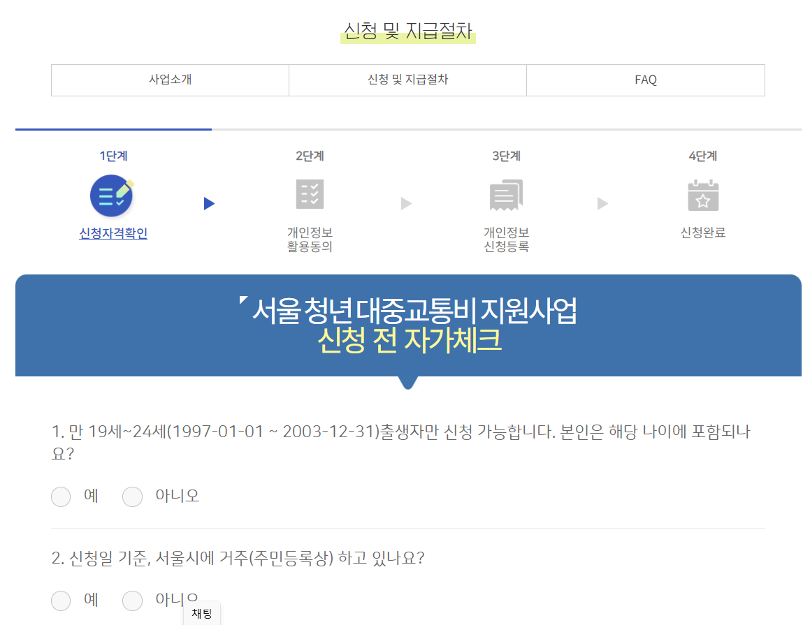 '서울 청년 대중교통비 지원사업' 신청 전 자가체크...