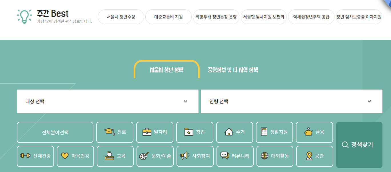 그래서 서울시 정책 or 청년 정책에 관심을 갖게 됬는데
