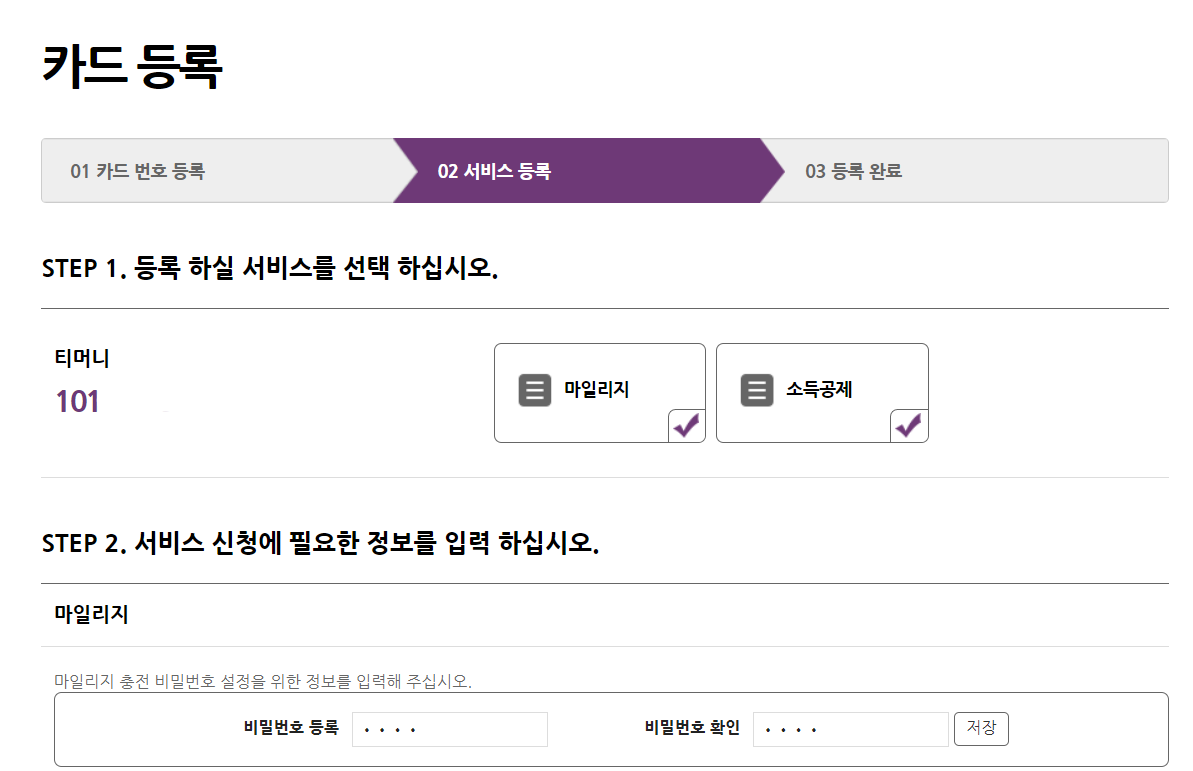 티머니에 등록한 카드 번호를 입력하면 끝이어서