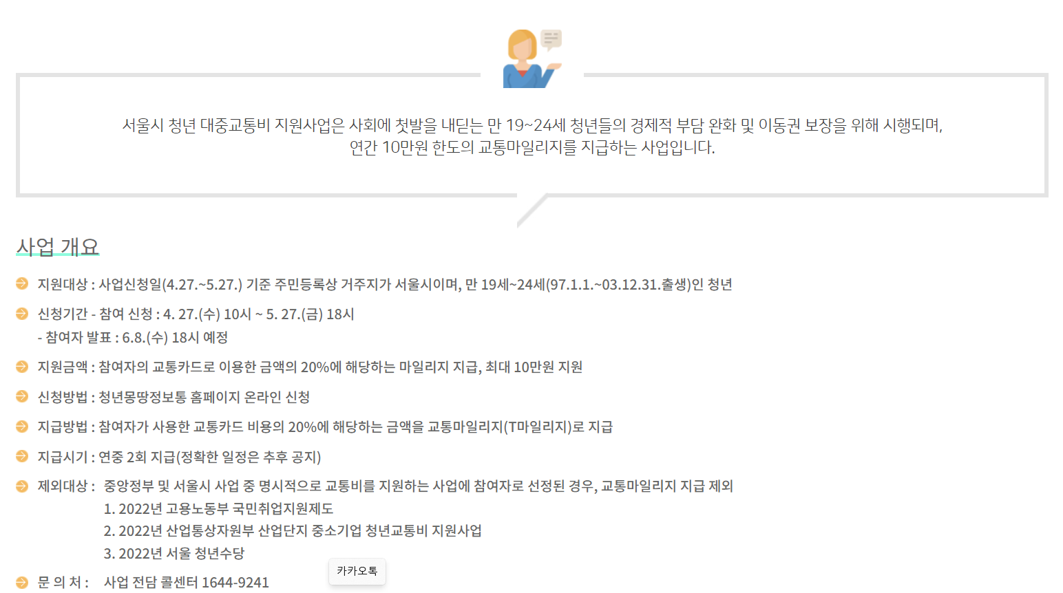 '서울 청년 대중교통비 지원사업' 안내가 빠!!빡!!