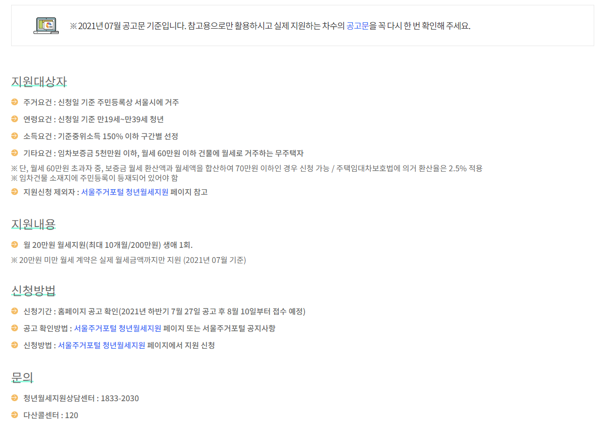 아래 예시는 '청년월세지원' 관련 페이지 🏡