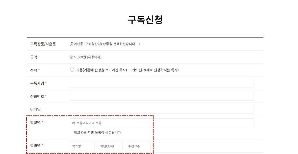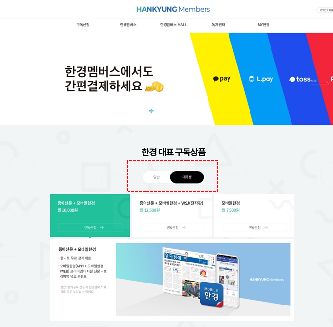 대학생 / 모바일 신문 / 연간구독 일시불 = 72,000원