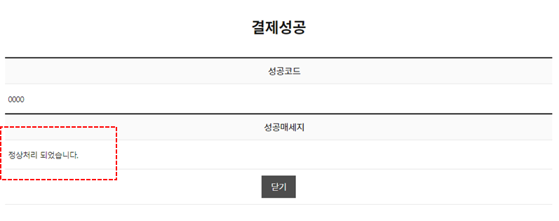 '정상처리 되었습니다' 문구를 확인할 수 있습니다.