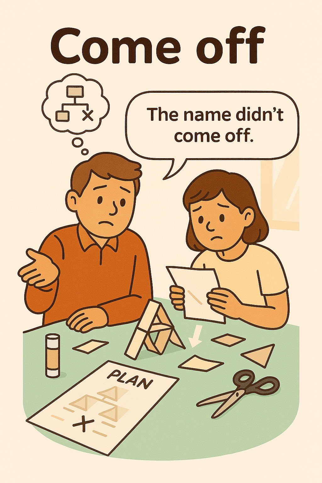 ‘come off’는 물리적 탈착, 일의 성사 여부, 계획의 성패 등 정말 실용적인 표현이에요. 원어민들이 즐겨 써요!