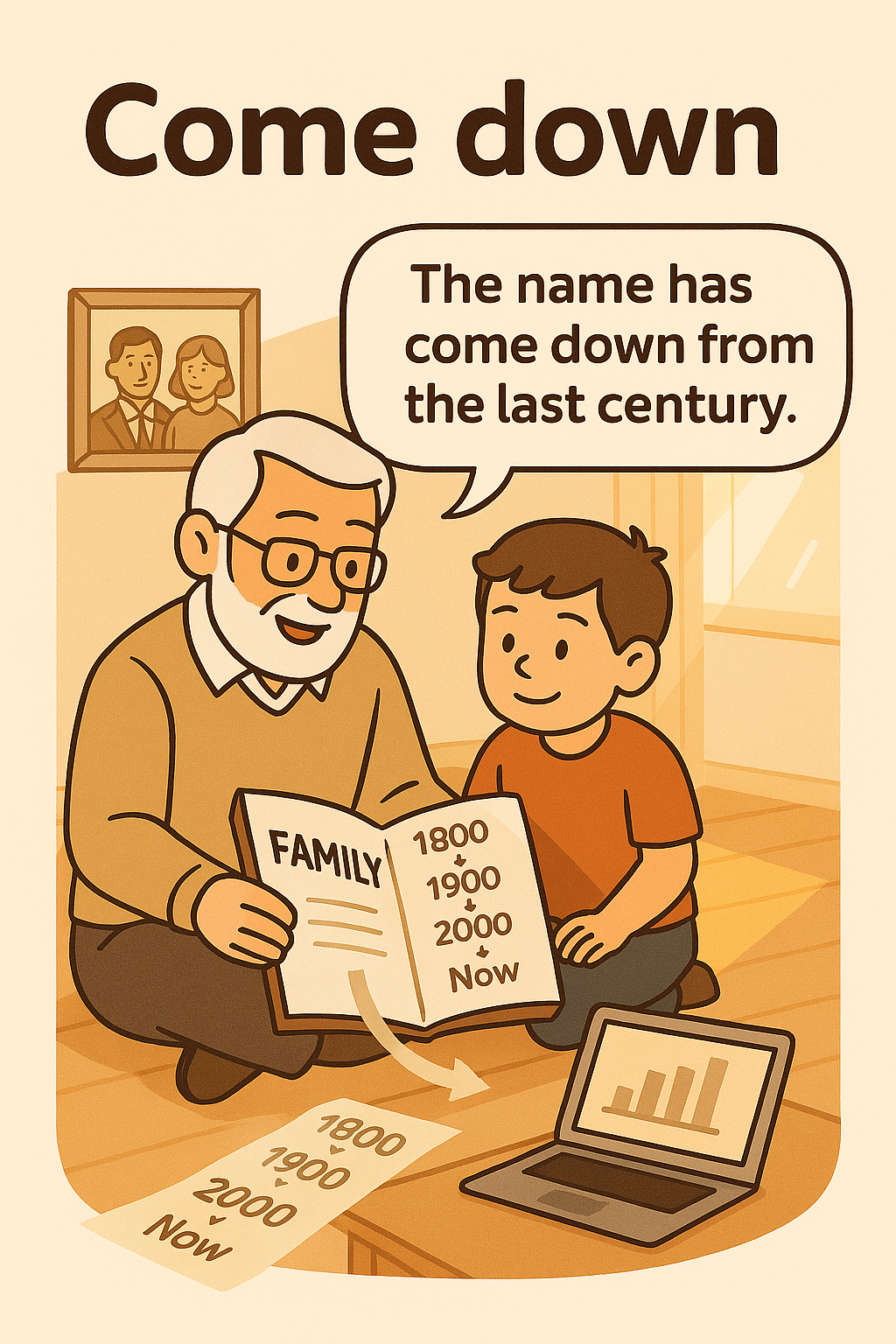 📍 come down – 무너지다 / 착륙하다 / 전해 내려오다