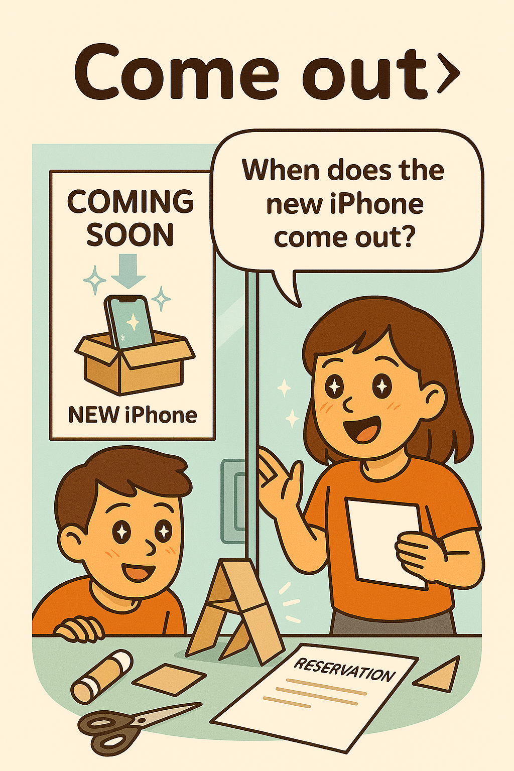 📍 come out – 나오다 / 공개되다 / 없어지다