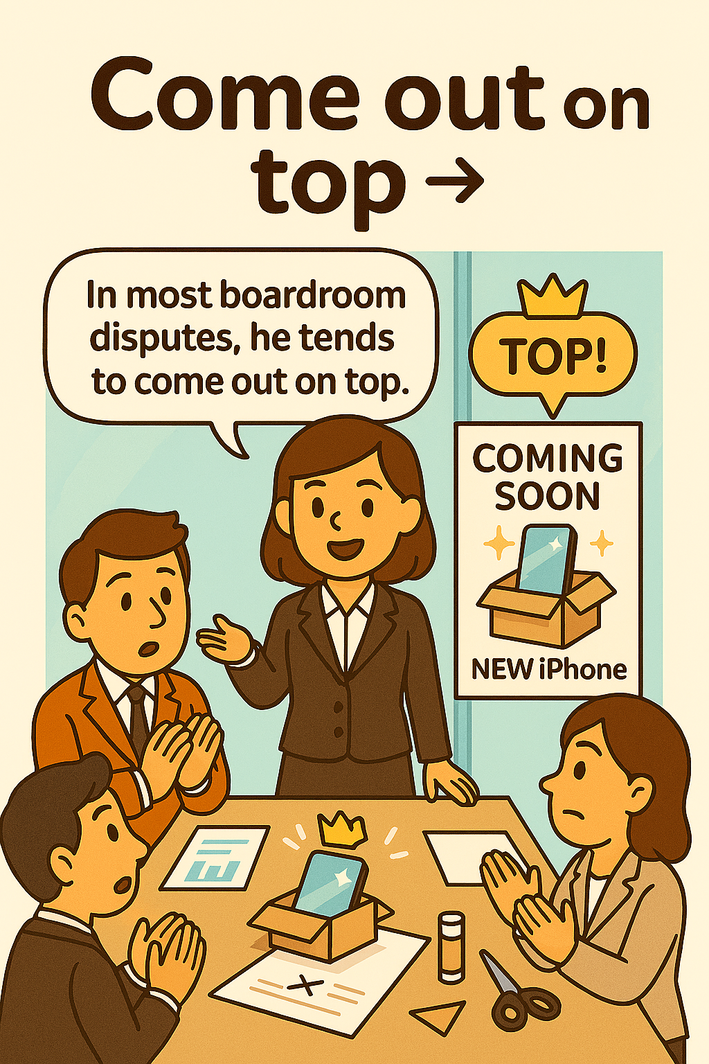 ‘come out on top’은 논쟁, 경쟁, 선거 등에서 승리하다는 의미로 쓰이고,