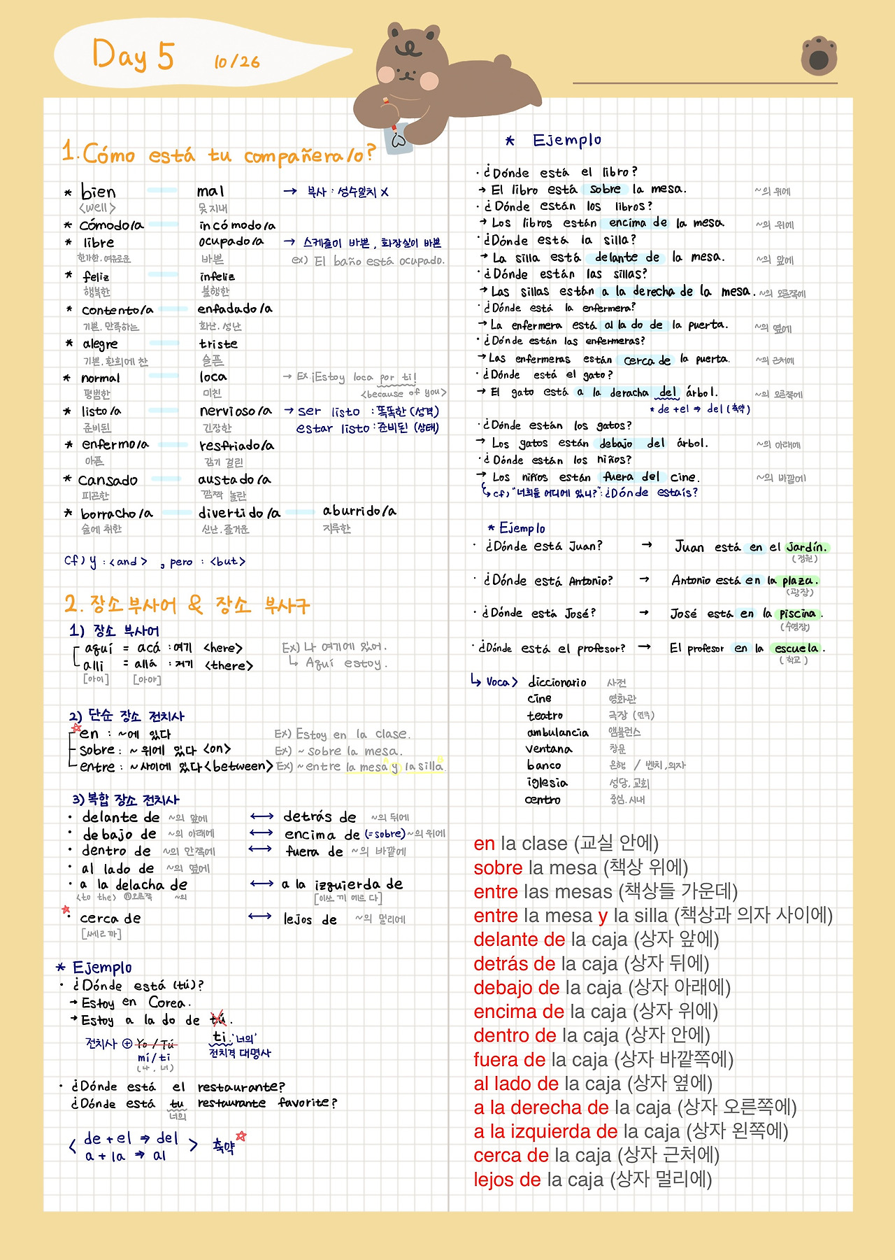 [Español Día 5] 스페인어 장소 부사어 & 장소 부사구