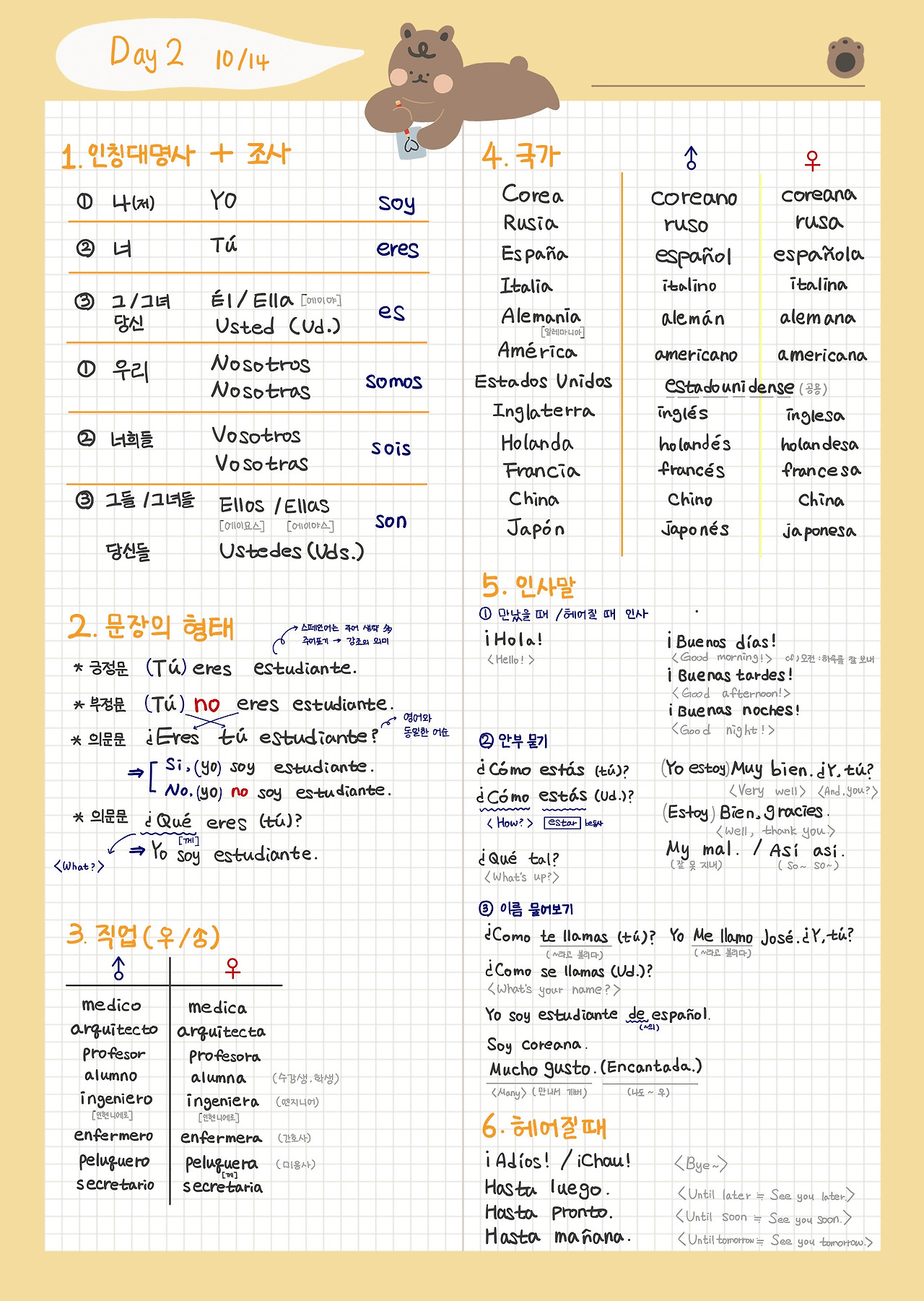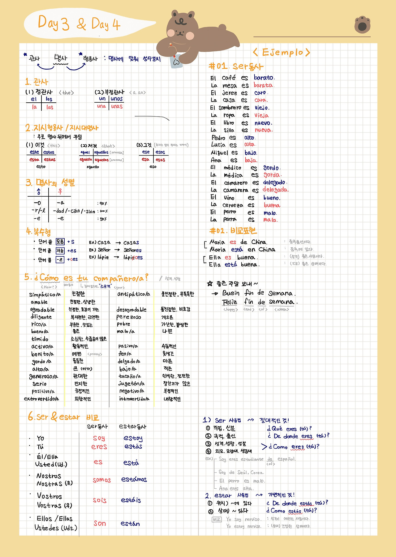 [Español Día 3, 4] 스페인어 관사, 명사의 성별 | ser 동사 vs estar 동사 비교